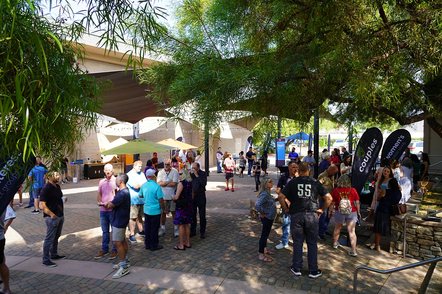 After you park, walk toward the central plaza – this is one of our favorite gathering spaces! You’ll notice all buildings have a letter A-E. Look for the START HERE kiosks if you need help with anything. Our team is ready to serve you and help answer any questions you may have. And don’t miss the opportunity to stop in at Grace Cafe before you head inside.